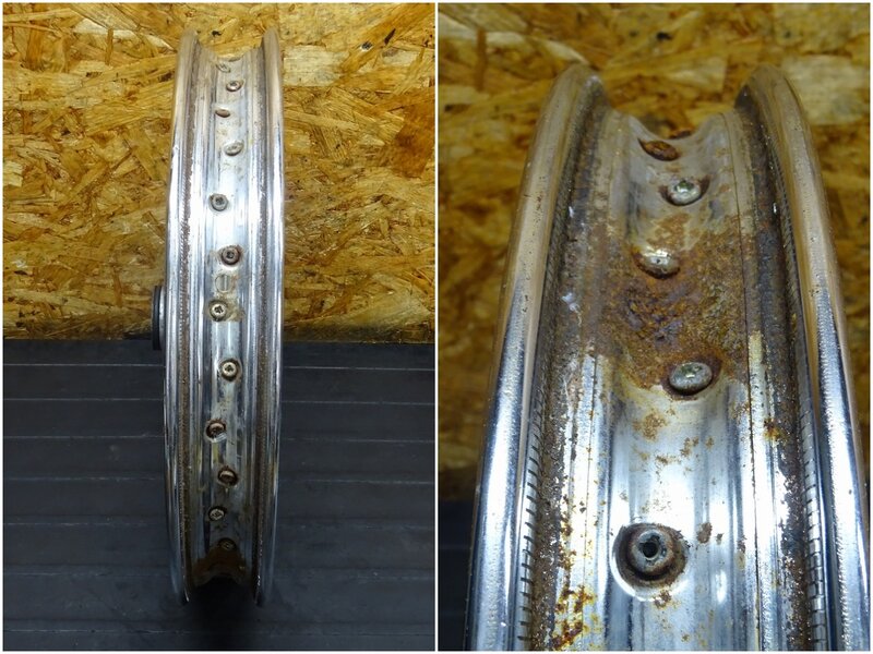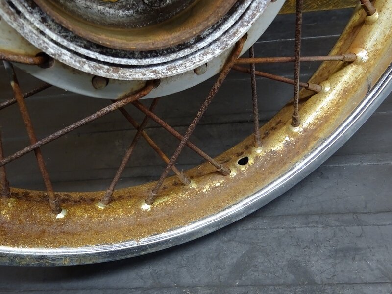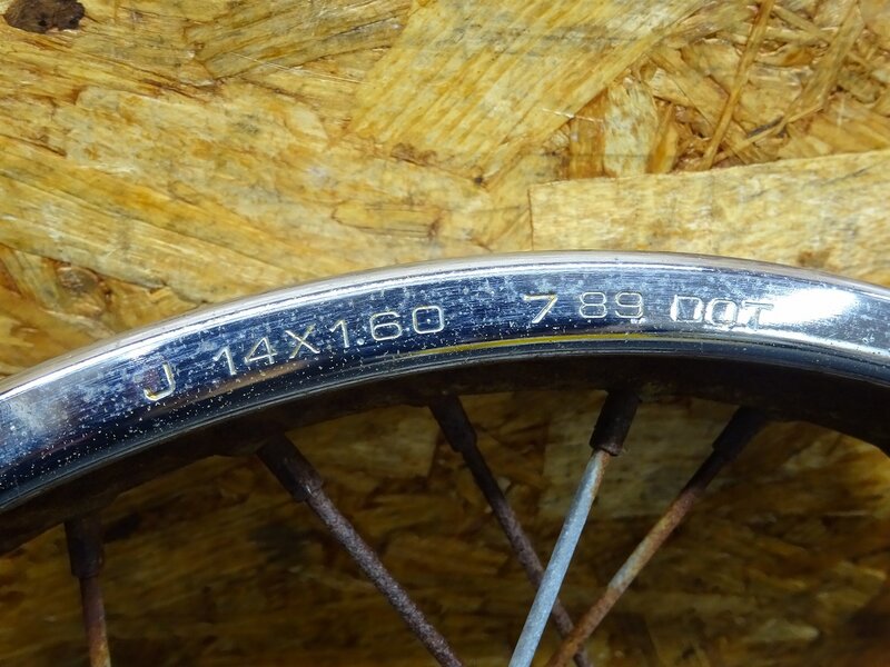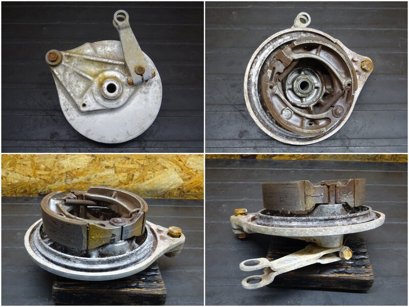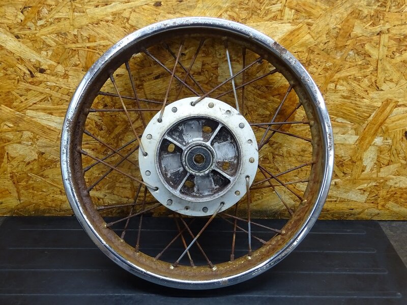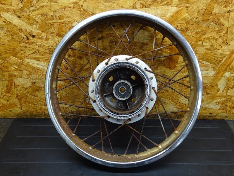 【260106】MD90(MD90-1924)◆ リアホイール 14×1.60 ドラムパネル ハブ スプロケット 錆大/フレ有 ジャンク 【郵政カブ