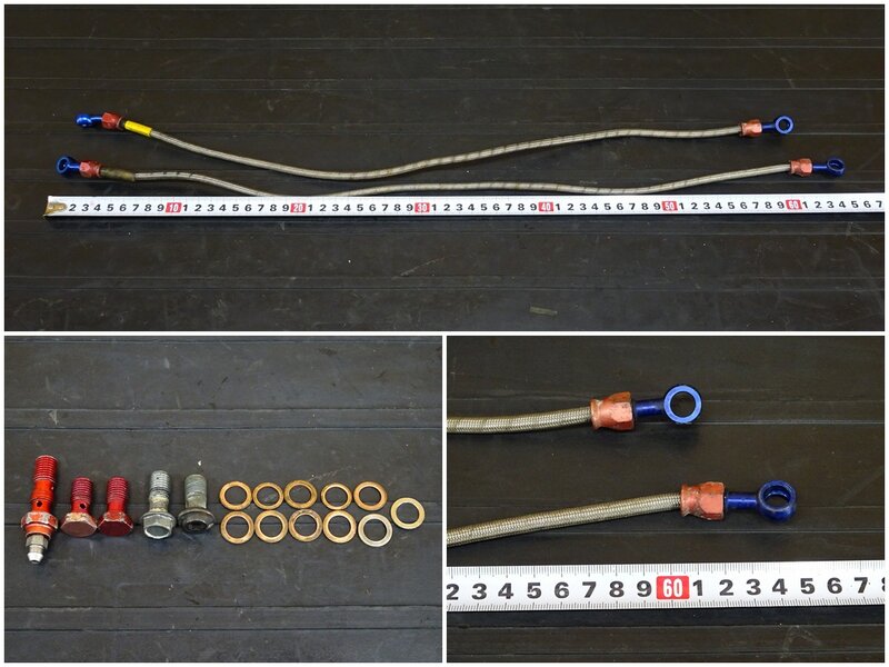 - 【251001】ZXR250(ZX250C-012)◇ ブレーキホース前後セット 社外フロントブレーキホース メッシュ 純正リアブレーキホース