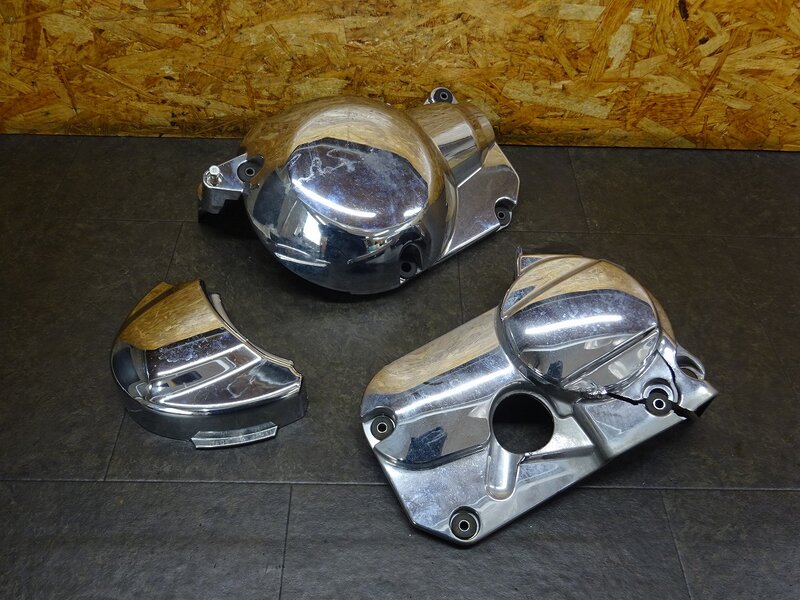 【260219】ドラッグスター400(VH01J-015)◆ エンジンカバーセット メッキカバー 割れ/腐食有 ※エンジンパーツ 【イモビ付