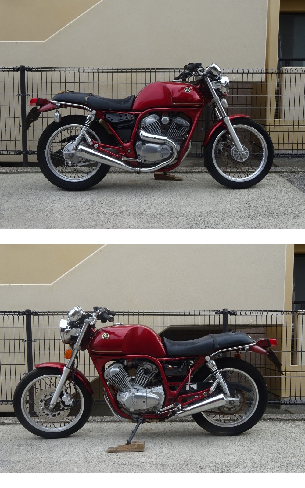 車名 :SRV250 フレーム番号 :4DN-026*** エンジン番号 :4DN モデル年式 :1993年 走行距離 :15391㎞(メータ読み) アクスル径 :フロント 約15㎜、リア 約15㎜ フォーク径 :約38㎜ キャリパーピッチ:フロント 約100㎜、リア 約㎜