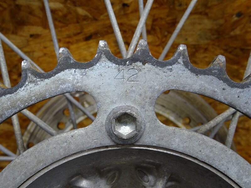 - 【251107】KLX250(LX250E-A05)◆ リアホイール 18×2.15 タカサゴリム ハブ スプロケット 42T 【04’ Dトラッカー