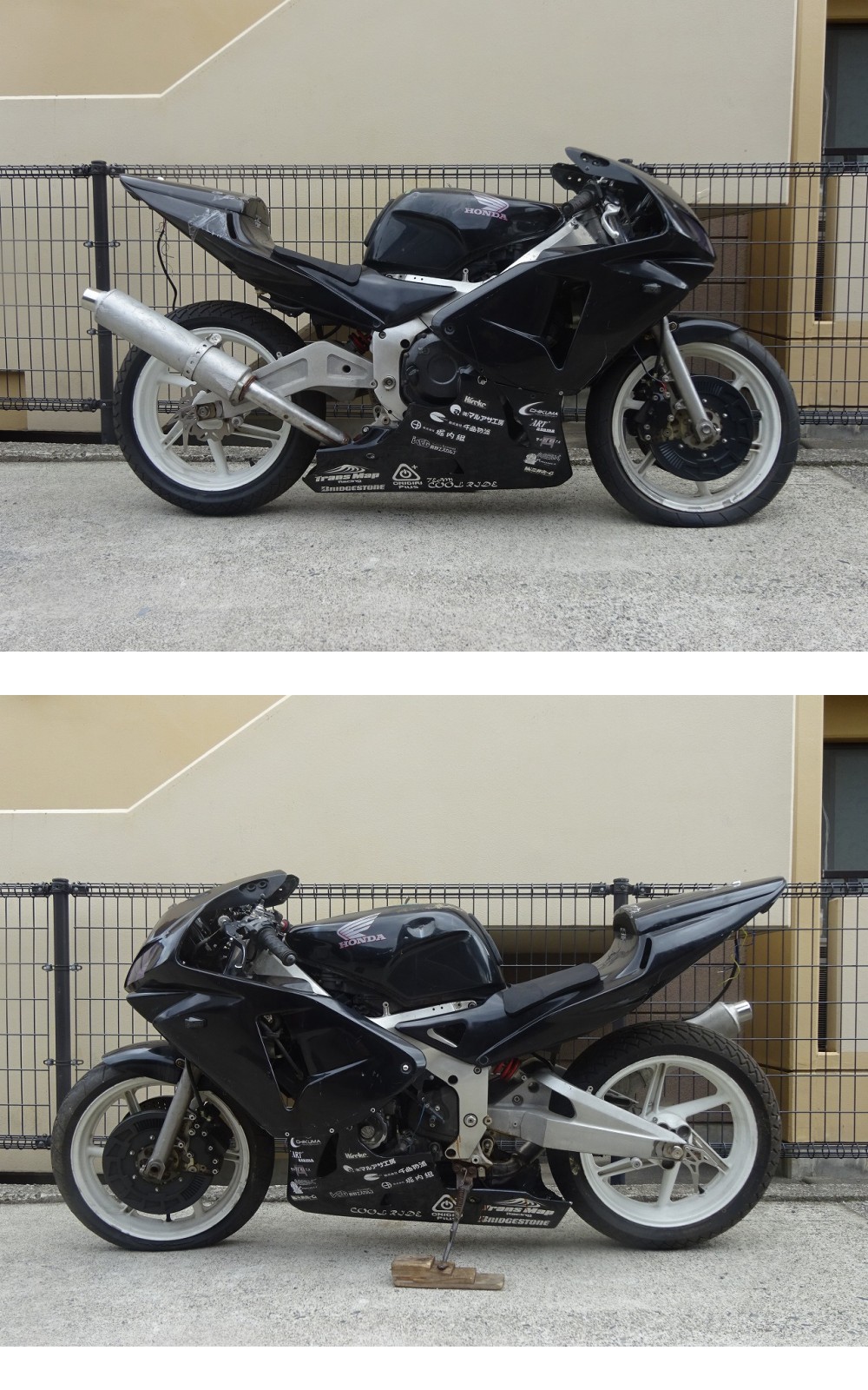 車名 :CBR250RR フレーム番号 :MC22-1010629 前期 エンジン番号 :MC14E-1400383 後期 状態 :改造、流用多数詳細不明。質問、写真ご確認の上ご入札お願い致します。 アクスル径 :フロント 約25/20mm フォーク径 :約37mm キャリパーピッチ:フロント 約80mm