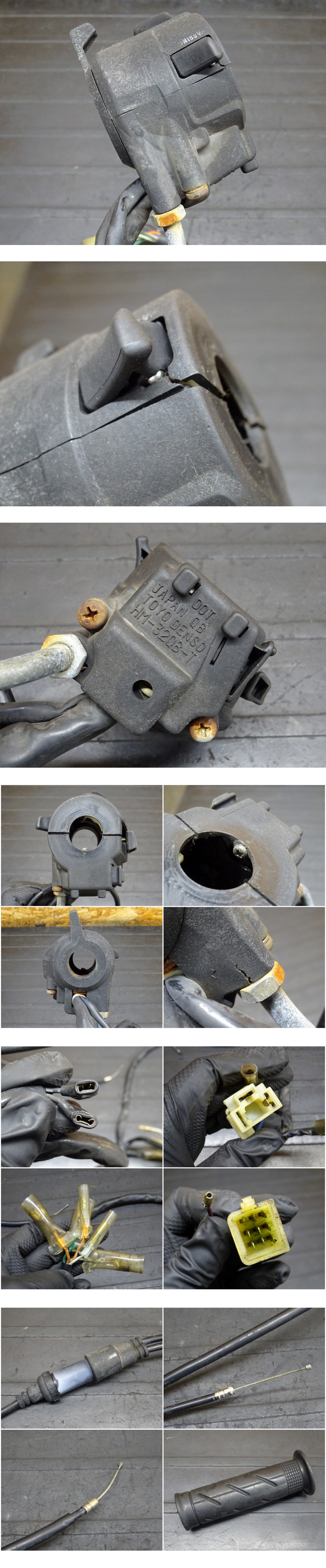 - 【251213】ブロス400(NC25-1100)◆ ハンドルスイッチ左右セット スイッチボックス スロットルパイプ 被覆破れ/割れ有 【BROS ブロス650
