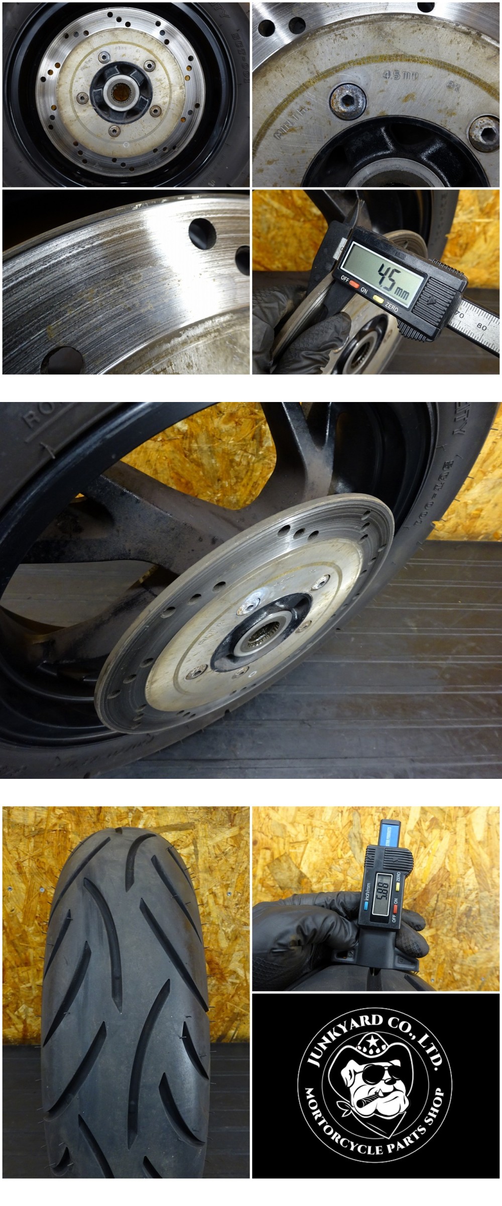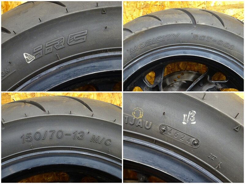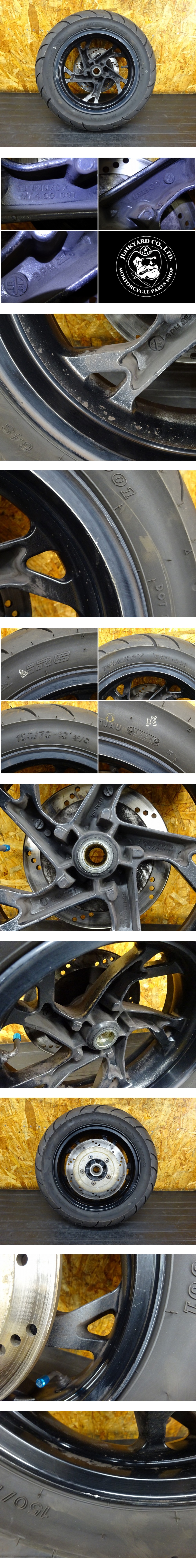 【251117】ジェンマ250(CJ47A-101)◇ リアホイール 13×4.00 ブレーキディスク 段付き有 中古タイヤ 24年製