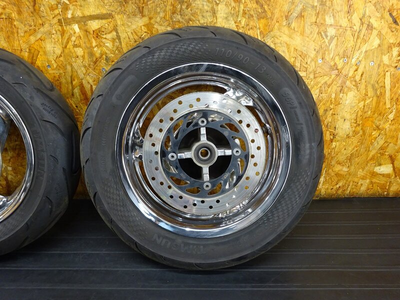 【260201】フォルツァZ(MF08-1018)◇ ホイール前後セット フロント 13×2.75 リア 12×3.50 メッキ 中古タイヤ メッキ浮き/傷有