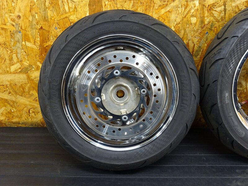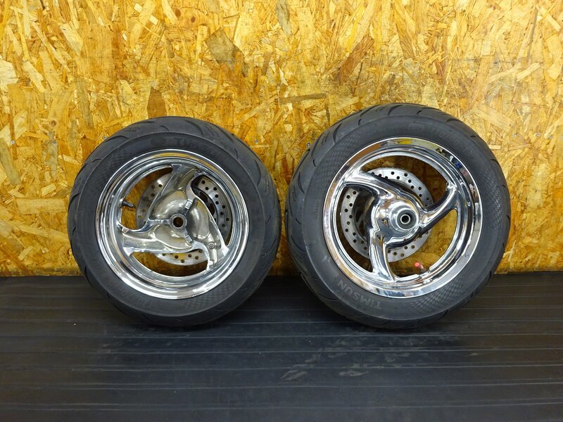 - 【260201】フォルツァZ(MF08-1018)◇ ホイール前後セット フロント 13×2.75 リア 12×3.50 メッキ 中古タイヤ メッキ浮き/傷有